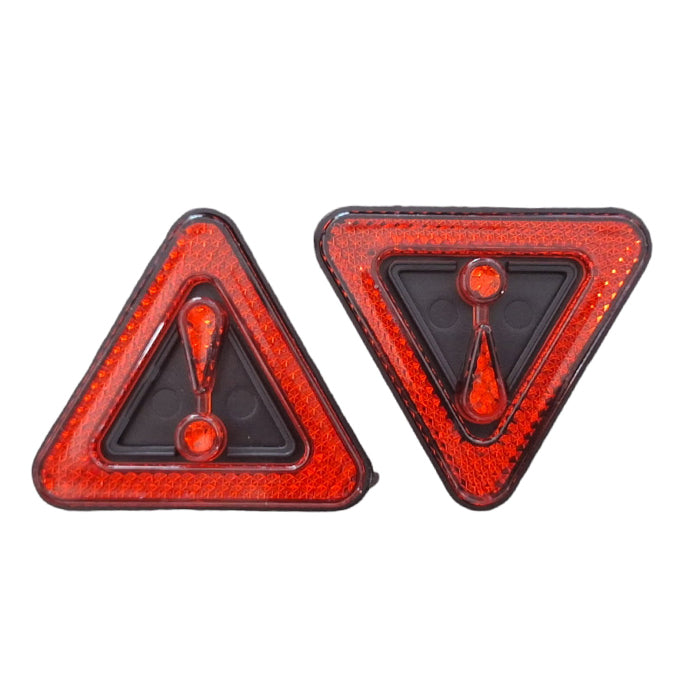 Αυτό το σετ δύο τριγωνικών ανακλαστήρων είναι η τέλεια προσθήκη για την ασφάλεια του οχήματός σας. Με φωτεινούς κόκκινους ανακλαστήρες και συμπαγές μέγεθος, έχουν σχεδιαστεί για να παρέχουν υψηλή ορατότητα σε συνθήκες χαμηλού φωτισμού, προειδοποιώντας τους άλλους οδηγούς για την παρουσία σας.