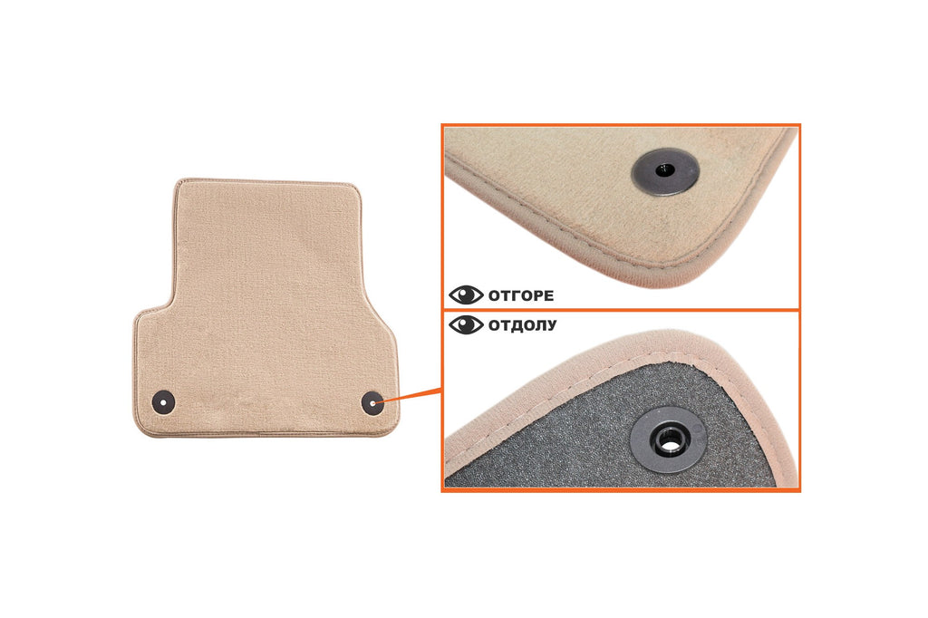 Мокетни стелки Petex за Audi A6 / A6 Allroad / A7 (2010–2018), 4 части, бежови, Comet, захват B01E8