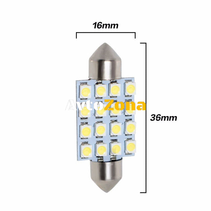 LED Led Diodni Krushki, 16 SMD 5050 , 31mm, 36mm, 39mm, 41mm, 12V, Byala Svetlina