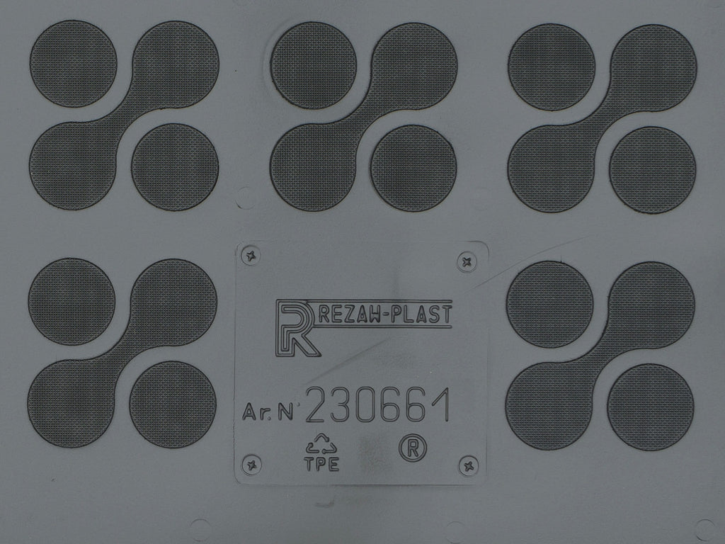 Изработена от термопластични еластомери (TPE), стелката съчетава гъвкавост и издръжливост. Устойчива е на горива, масла, препарати и температурни амплитуди. Без PVC и без неприятна миризма.