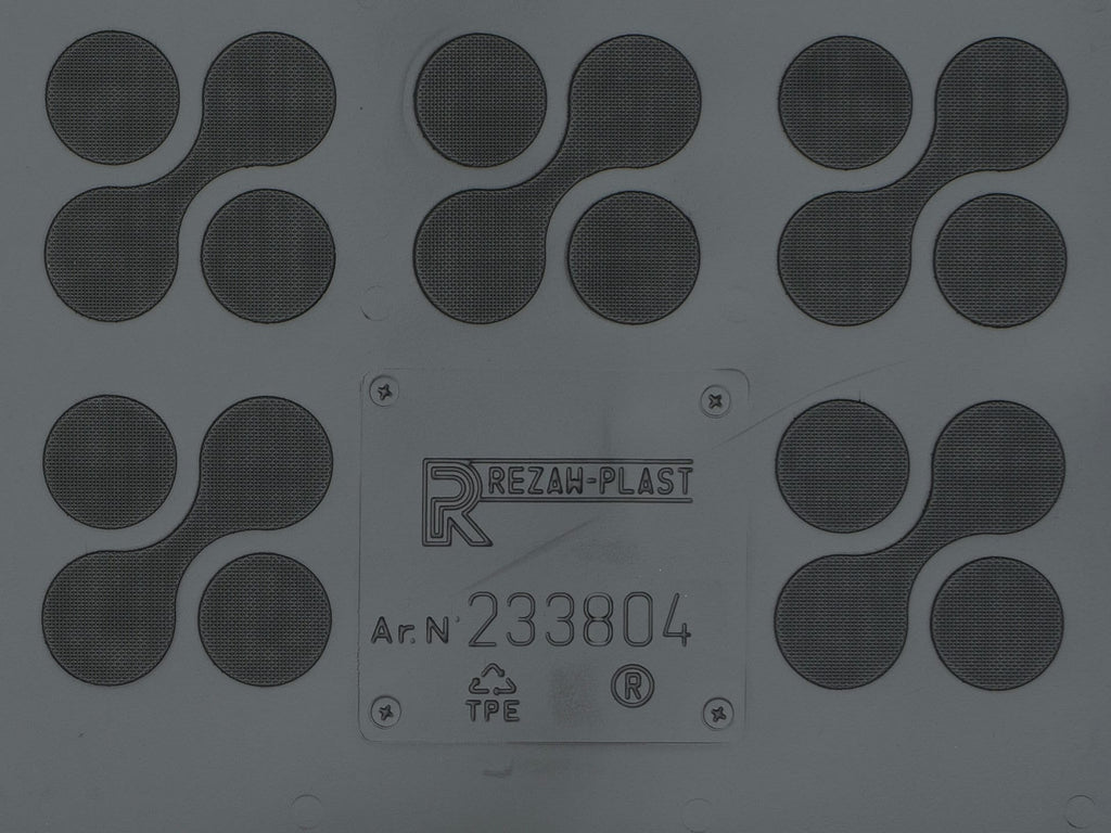 Изработена от устойчив термопластичен еластомер (TPE) – синтетичен каучук, стелката е гъвкава, водоустойчива и издръжлива на износване, ниски и високи температури, масла и химикали. Без неприятна миризма.